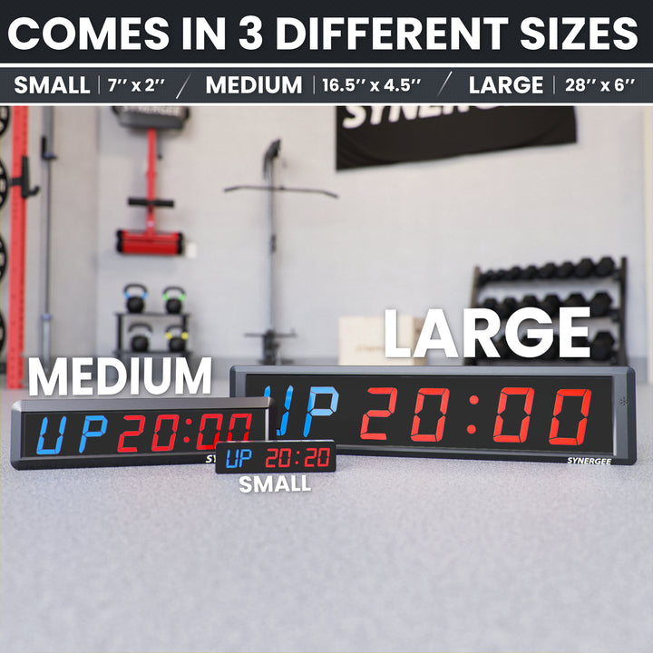 A Synergee Premium Interval Timer is the perfect addition for any gym – home or commercial. Choose between 2 sizes – Medium (16.5” x 4.5") & Large (28” x 6”) – to suit your gym needs.