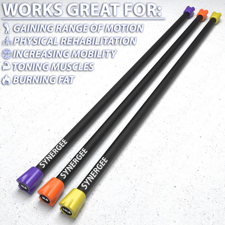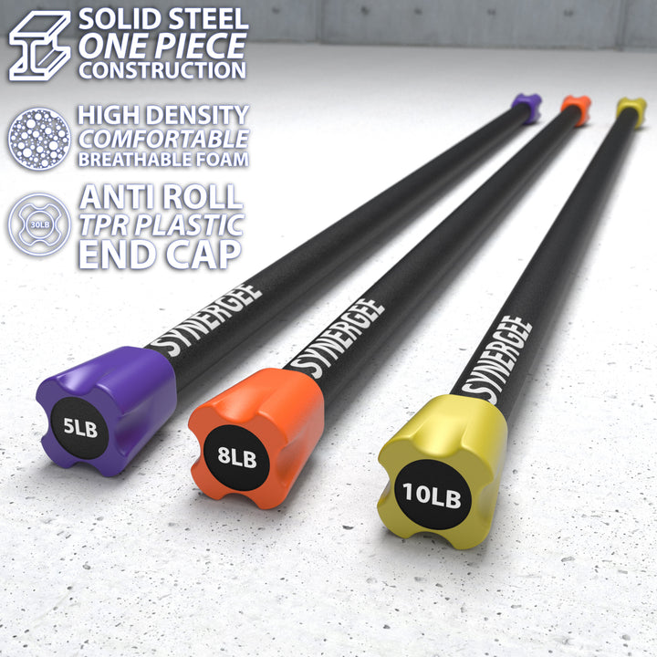 Synergee Workout Bar Combo Packs give you the weights you need in the most convenient, compact, and comfortable package imaginable! These bars are perfect for new and experienced fitness enthusiasts and are extremely easy to incorporate into a workout.