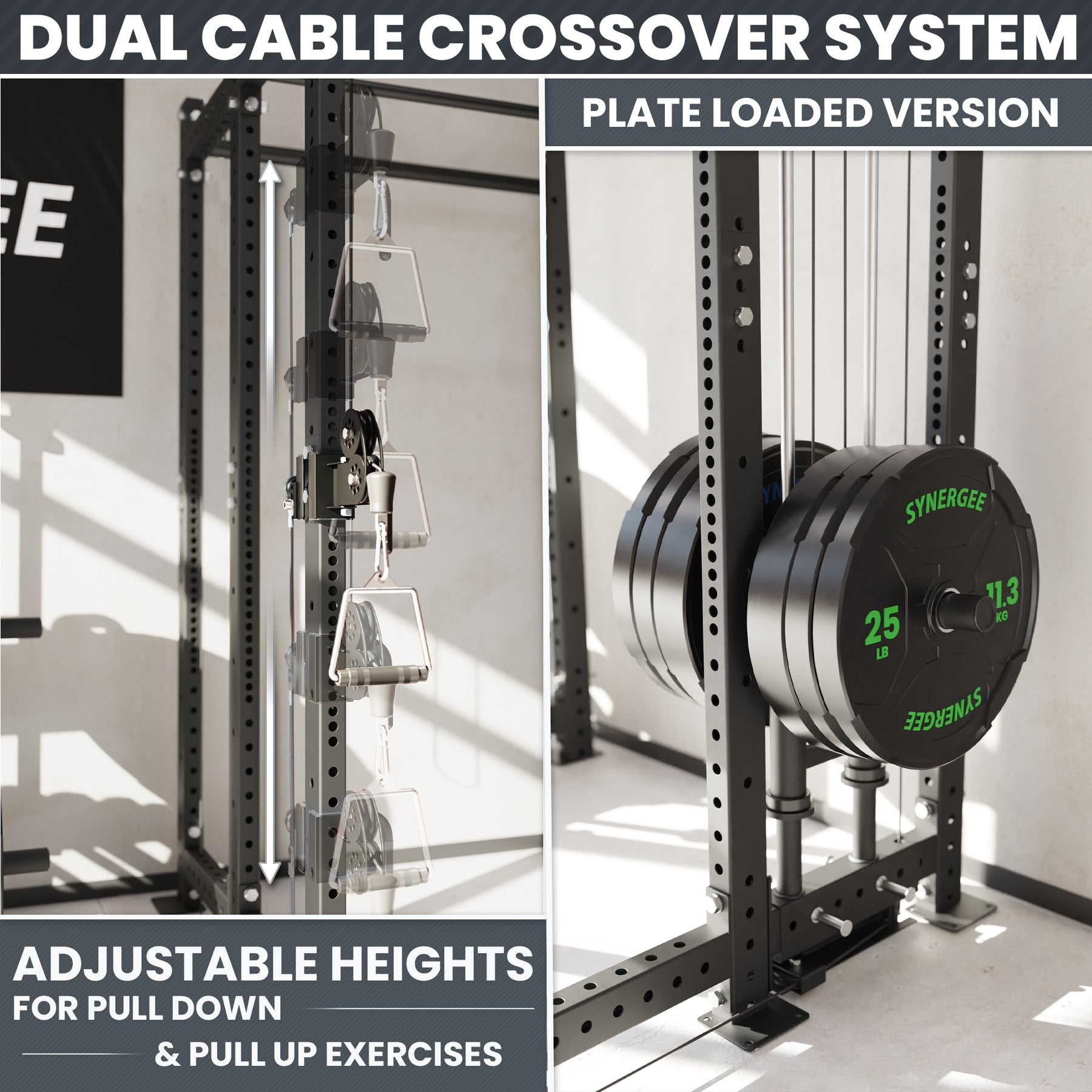 Synergee 2300 Series Power Cage with Plate Loaded Cable Cross Overs and Smith Machine