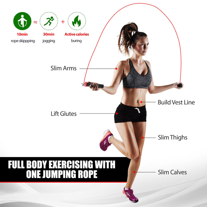 The handles are contoured to fit comfortably in your hands and be held with a natural, relaxed grip. Each is wrapped in an absorbent athletic tape and shaped to reduce forearm fatigue, so you can keep skipping away those calories!